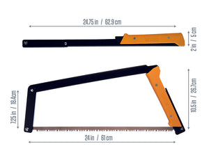 BOREAL saws are revolutionary folding bow saws that effortlessly unfolds in seconds for easy, high performance cuts. The blade's length is optimally sized for powerful sawing strokes, and yet short enough for packability. And the 3 hinged trapezium-shaped frame allows large diameter cuts. The blade safely folds into the frame when not in use, protecting you and your gear.